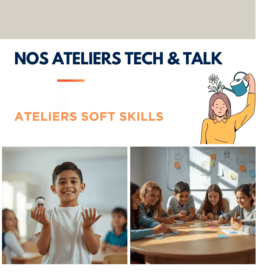 Pour les jeunes dès 7 ans, NEXGEN propose une offre flexible et complète : un abonnement au trimestre ou au semestre avec deux séances hebdomadaires de 1h30 (une en technologie, une en soft skills), ou des ateliers ponctuels d’1h30 sur des thèmes différents chaque semaine. Nos ateliers sont organisés en groupes fixes pour garantir progression, cohésion et apprentissage solide. 👉 Pour le détail des thèmes et contenus, rendez-vous dans Nos Formations > Catégorie Jeunes Talents.